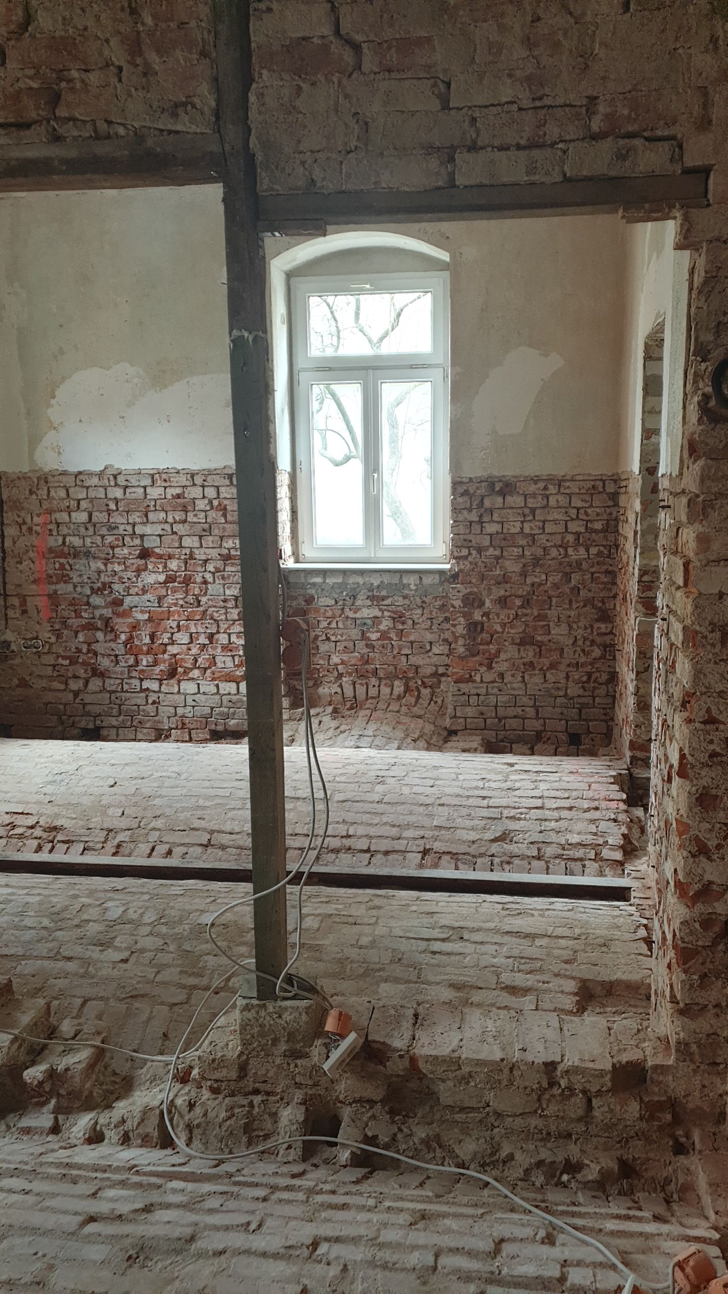 - Auffüllung der Gewölbekappe mit Leichtbeton und einer Dämmschicht aus Styropor und Estrichboden